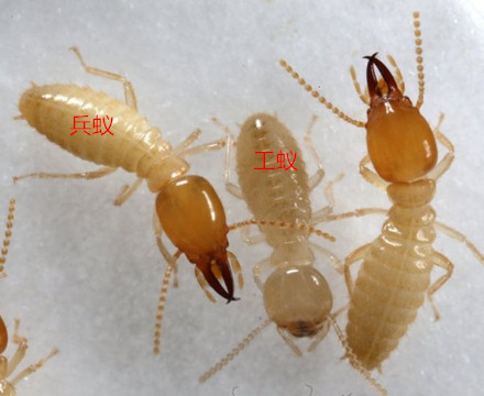 由于兵蟻失去了取食功能,因而食物由工蟻飼喂。